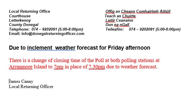 Next article: Notice of Polling Stations - FÓGRA MAIDIR LEIS NA STÁISIÚIN VÓTÁLA
